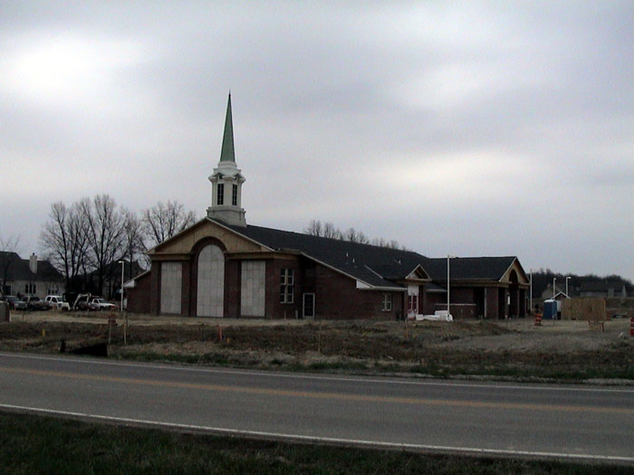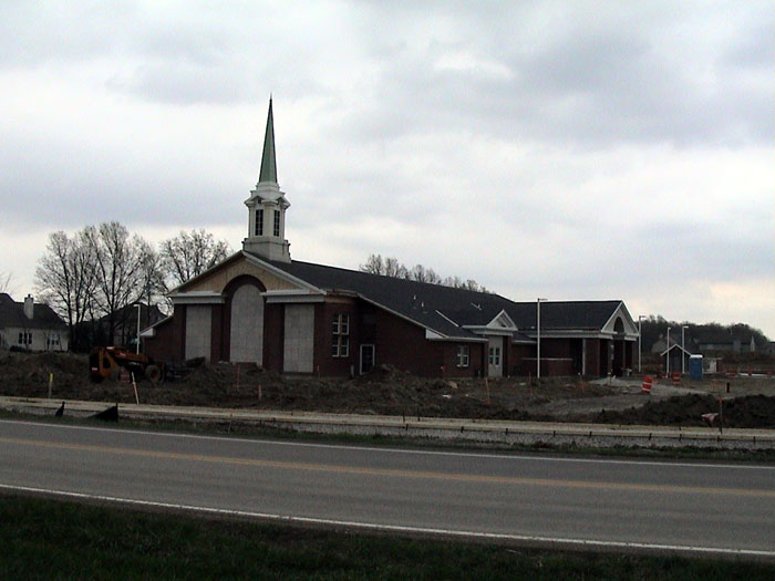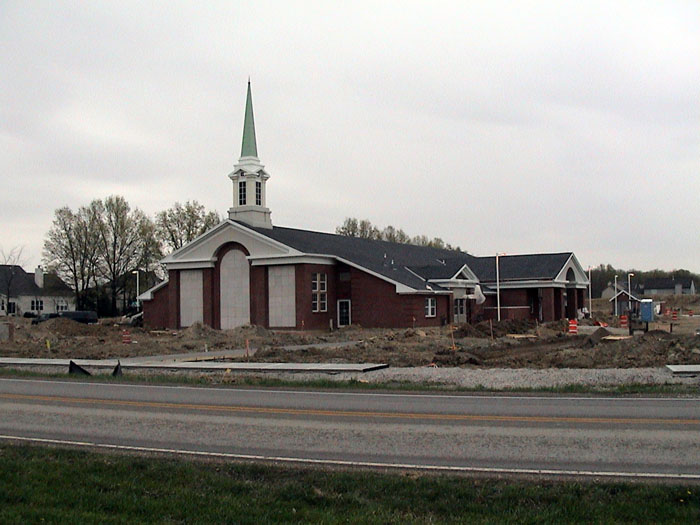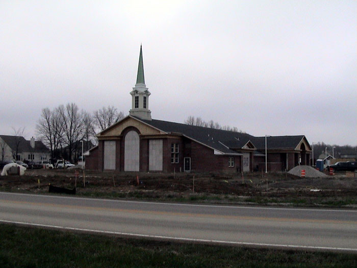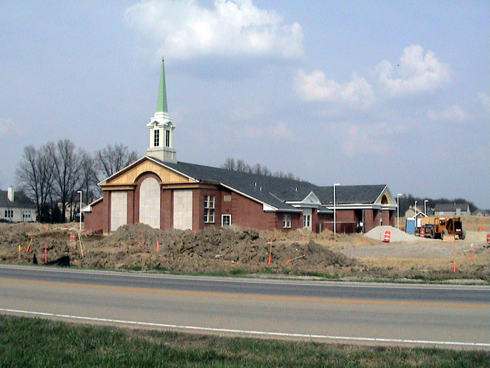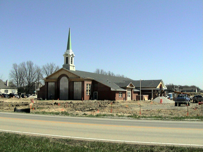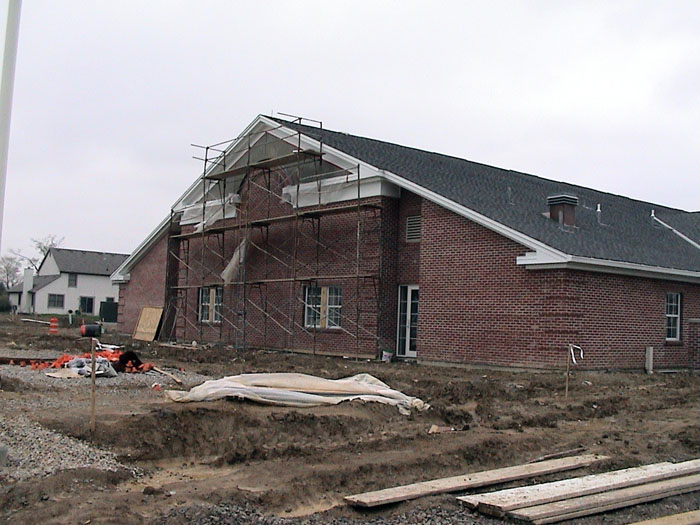 Thursday, April 24, 2003Work continued on the sidewalks and I also noticed a concrete pad back by the out building.They also installed the windows and doors on the north entrance. |