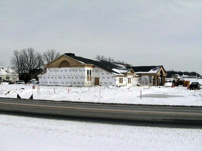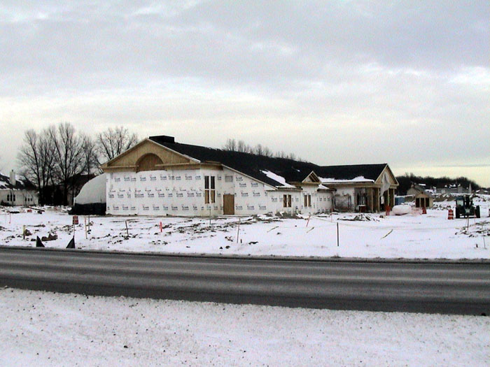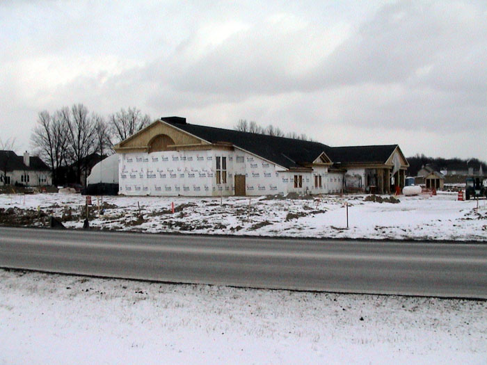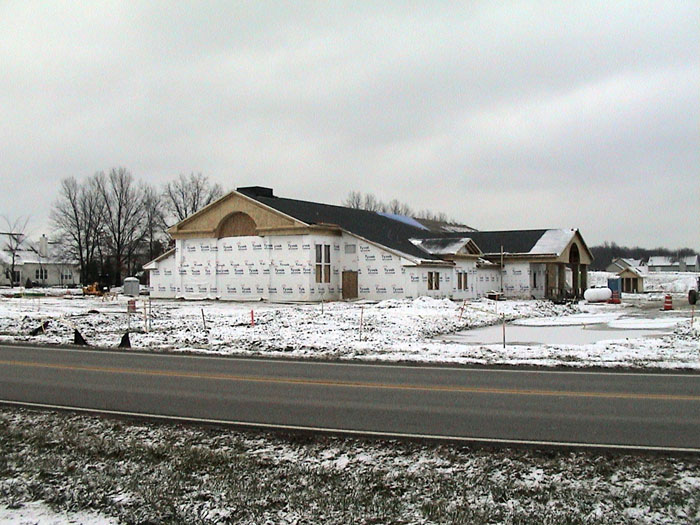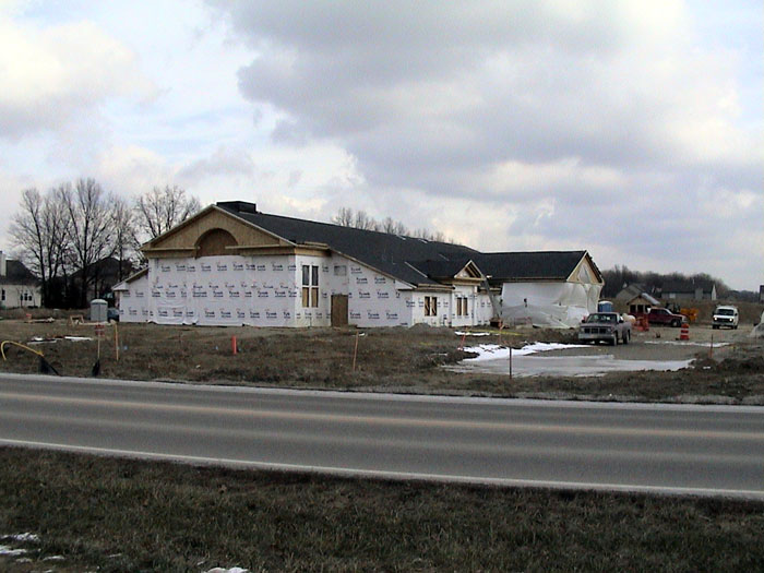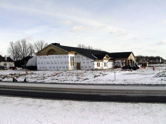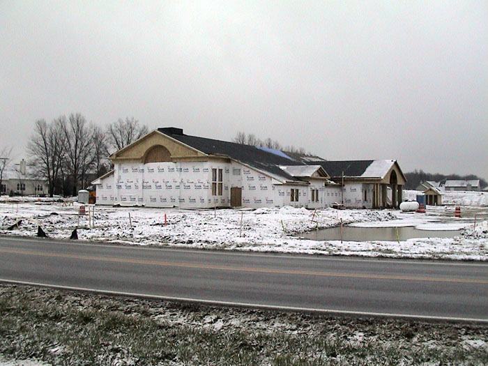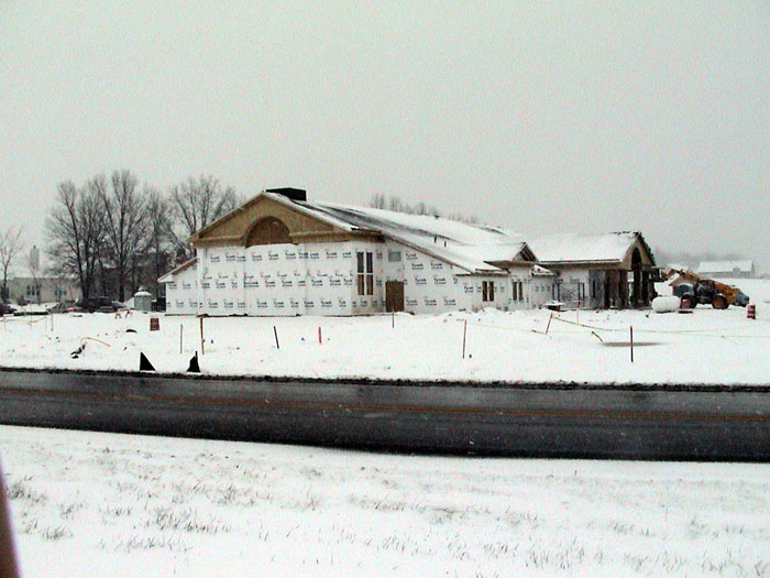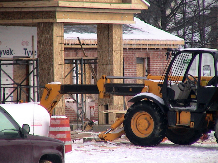 Wednesday, January 15, 2003The bricklayers have now moved to the front, north side of the building. They also continued moving dirt from the back of the lot. |