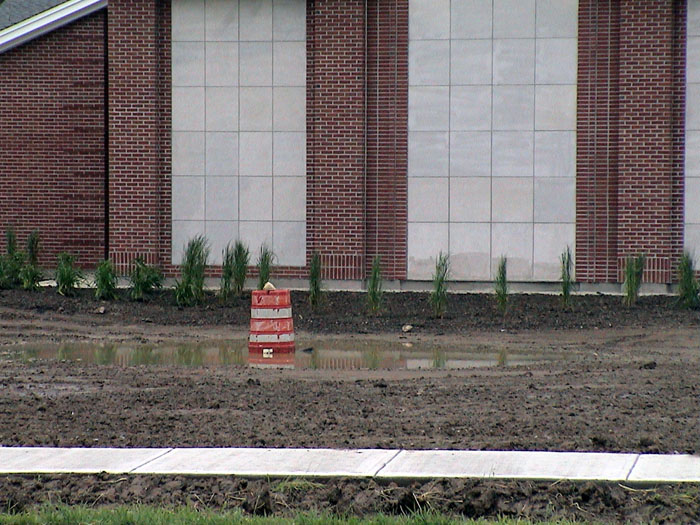 Tuesday, June 17, 2003The landscaping was getting rain today, but so was the parking lot. The parking lot needs to dry out so they can pave it. |